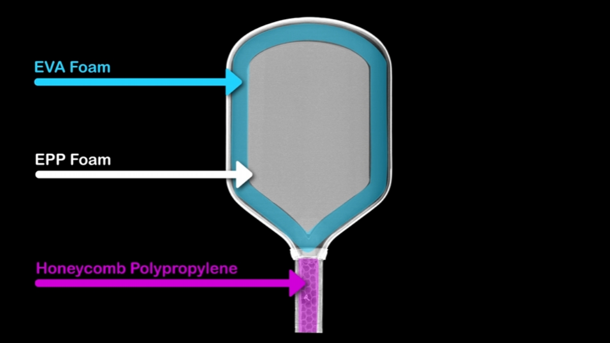 Thay vì sử dụng những vật liệu truyền thống, Bread and Butter Loco được đúc nhiệt tỉ mỉ, tích hợp lớp bọt EPP mật độ cao ở lõi và dải EVA chạy dọc chu vi. Cấu trúc này không chỉ gia tăng độ cứng cho khung vợt mà còn mở rộng vùng tối ưu lên mức tối đa, đưa thương hiệu này đứng ngang hàng với những “gã khổng lồ” như Selkirk hay JOOLA.