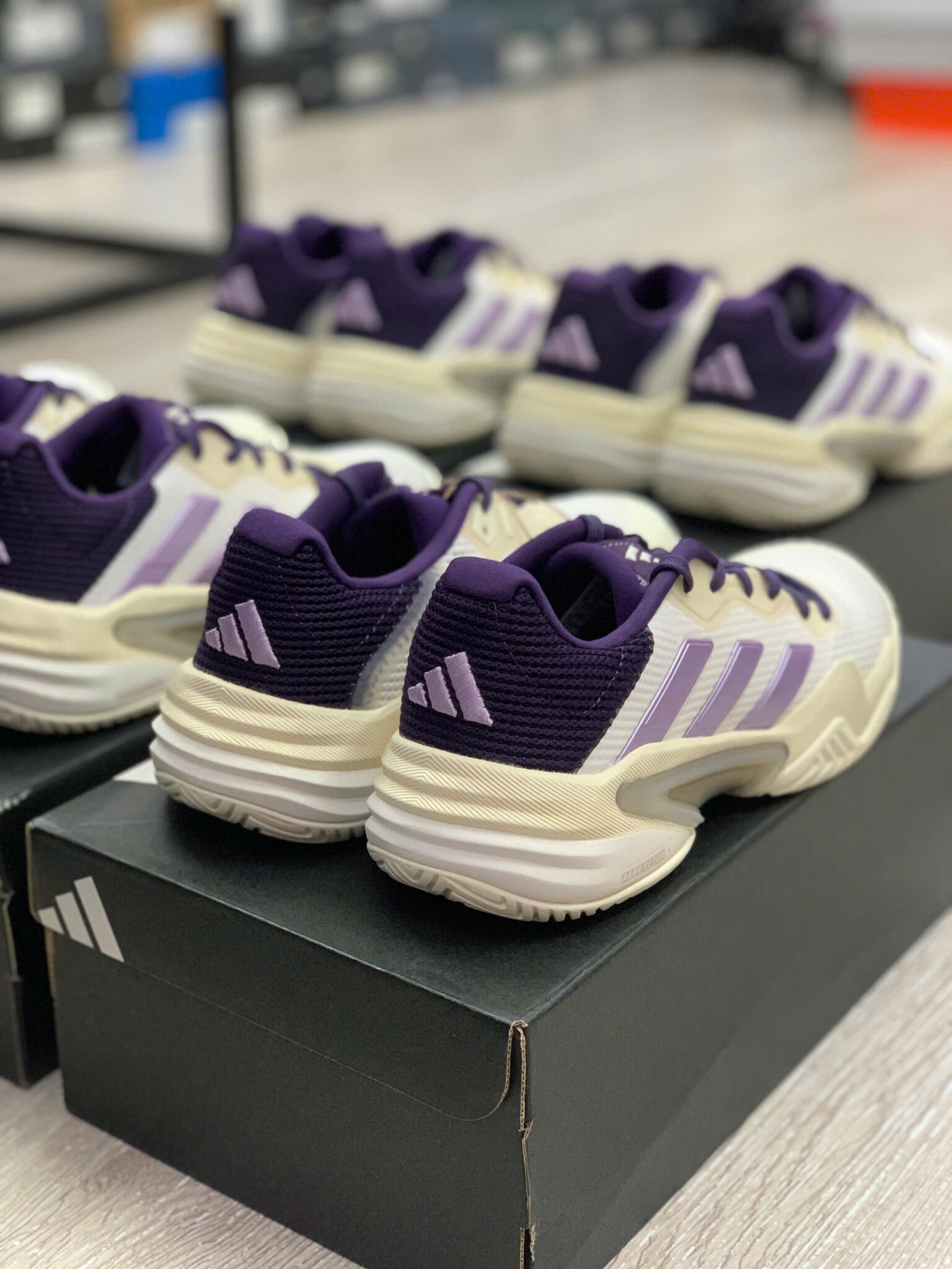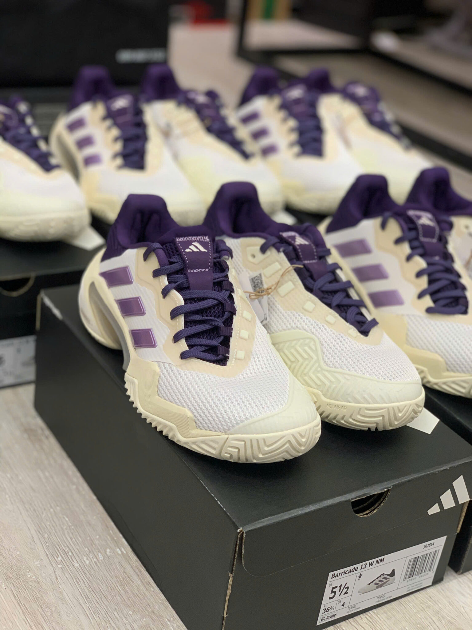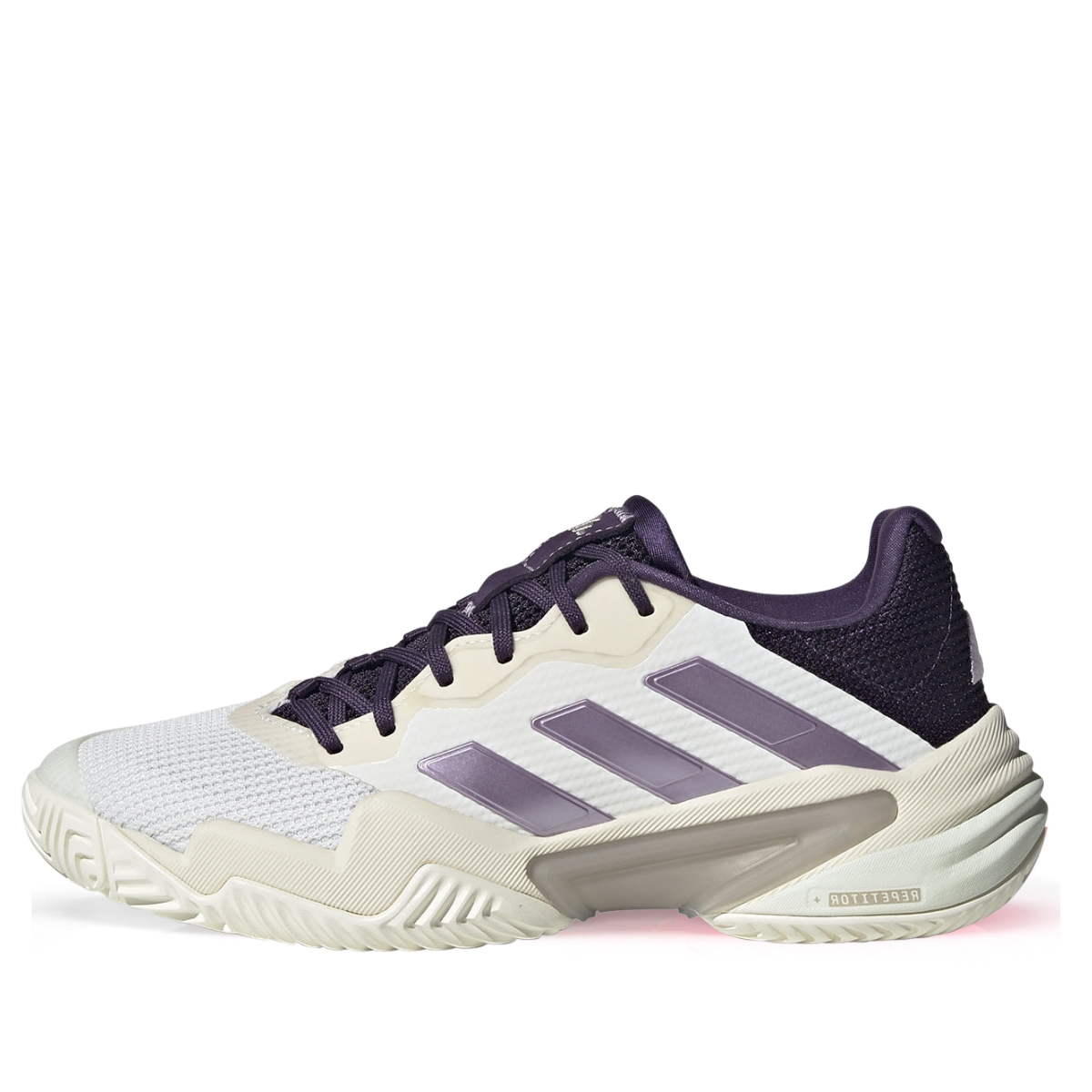 Adidas Barricade 13 “Core White & Powder Plum” (JR7814) là mẫu giày tennis cao cấp dành cho nữ, được thiết kế để đáp ứng yêu cầu di chuyển linh hoạt, hỗ trợ ổn định và độ bền cao trên sân cứng. Đây là phiên bản mới trong dòng Barricade nổi tiếng của Adidas, mang phối màu nhẹ nhàng với trắng chủ đạo và điểm nhấn tím nhạt, tạo nên vẻ ngoài nữ tính nhưng vẫn mạnh mẽ.