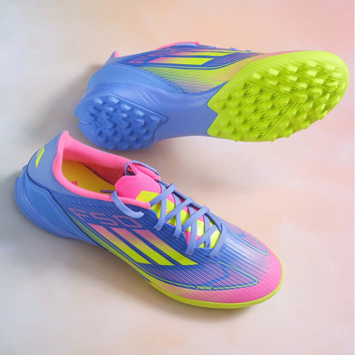 Với màu sắc nổi bật ‘Blue Fusion’, kết hợp giữa xanh dương, vàng chanh và hồng, giày adidas F50 League Turf không chỉ thu hút ánh nhìn mà còn thể hiện phong cách năng động và đầy sức sống. Màu sắc tươi sáng này không chỉ nổi bật trên sân mà còn dễ dàng kết hợp với các trang phục thể thao khác, giúp bạn tự tin thể hiện phong cách cá nhân.