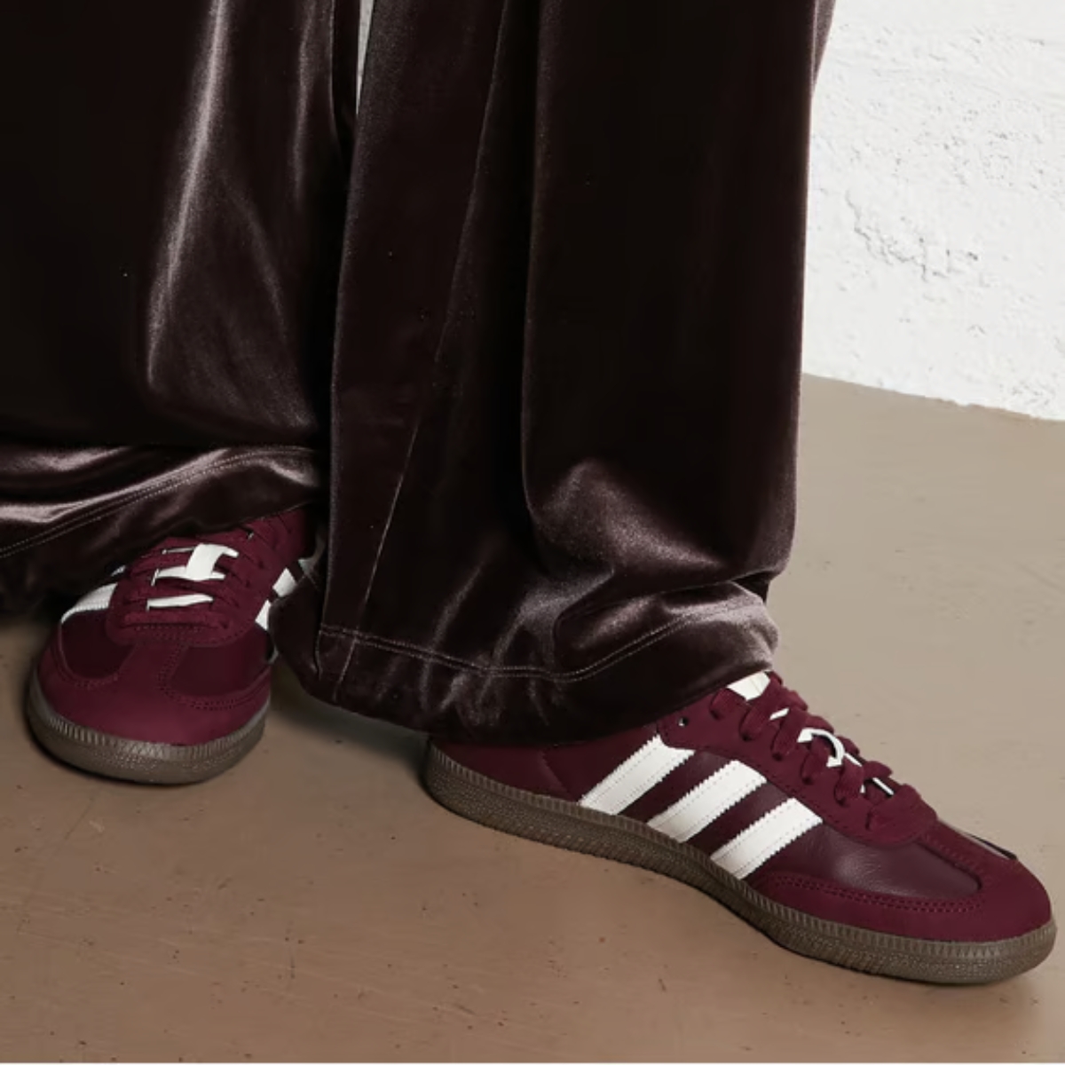 adidas Samba OG – đôi giày huyền thoại từ sân bóng đến đường phố – nay trở lại với phối màu Maroon Off White Gum cực kỳ độc đáo và thu hút. Sự kết hợp giữa tông đỏ rượu vang sang trọng, phần sọc trắng off-white cổ điển và đế gum cao su nâu đặc trưng, tạo nên một diện mạo vừa hoài cổ vừa thời thượng.