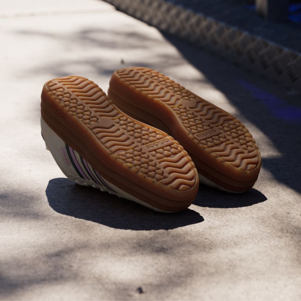 - Phối màu ретро: Màu off white (trắng kem) tạo nên vẻ ngoài ấm áp và cổ điển cho phần lớn upper. Điểm nhấn màu collegiate green (xanh lá cây đậm) xuất hiện ở ba sọc biểu tượng của Adidas ở hai bên thân giày, logo Adidas ở lưỡi gà và gót giày, tạo nên sự tương phản và gợi nhớ đến những thiết kế thể thao cổ điển.