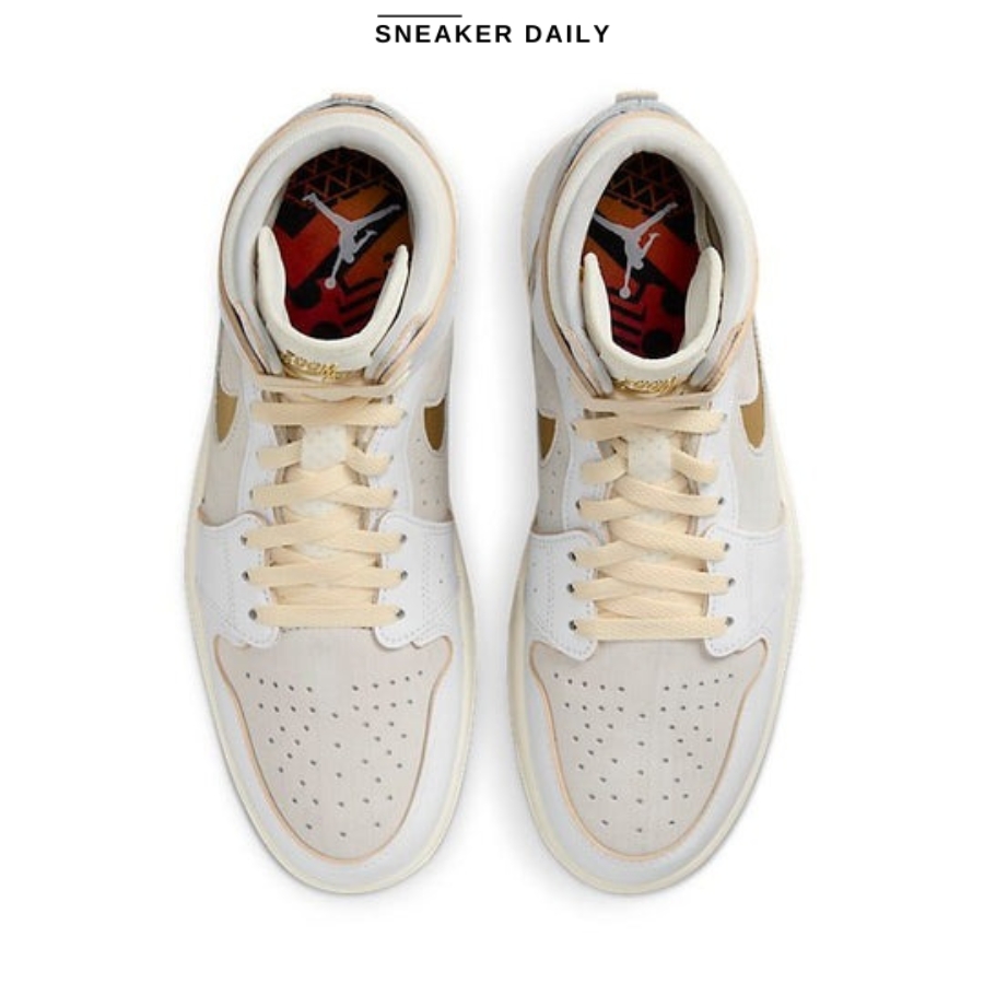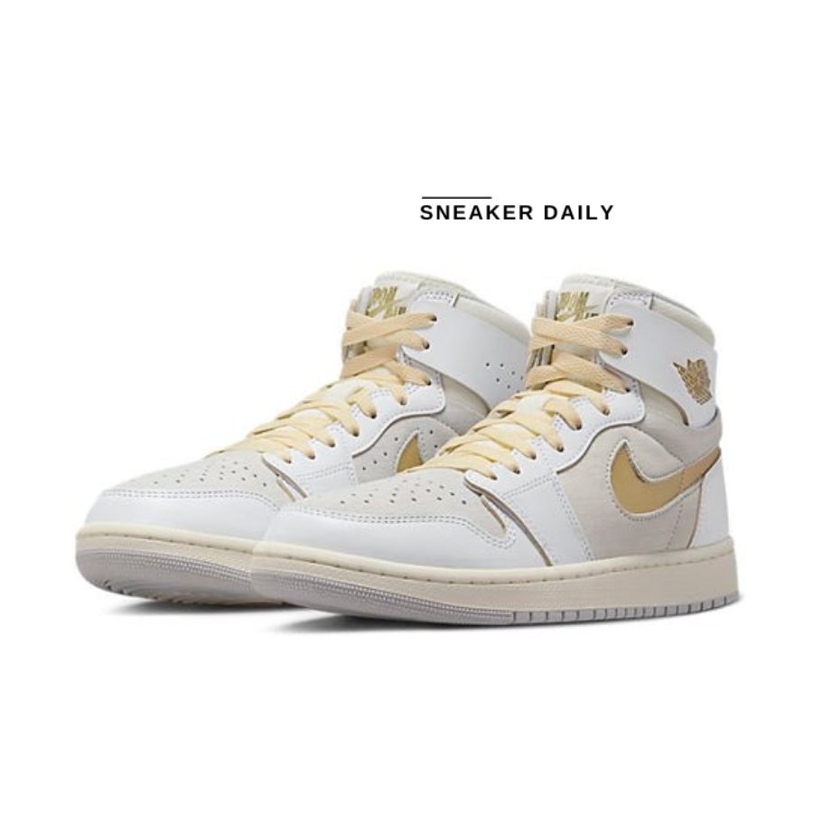 Giày Air Jordan 1 High Zoom Comfort 2 ‘FIBA’ DV1307-107 là một phiên bản cập nhật của Air Jordan 1 High Zoom Comfort, được phát hành lần đầu tiên vào năm 2021. Phiên bản mới này được lấy cảm hứng từ màu sắc của đội tuyển bóng rổ quốc gia Việt Nam, với các tông màu trắng, xám trung tính và vàng kim.