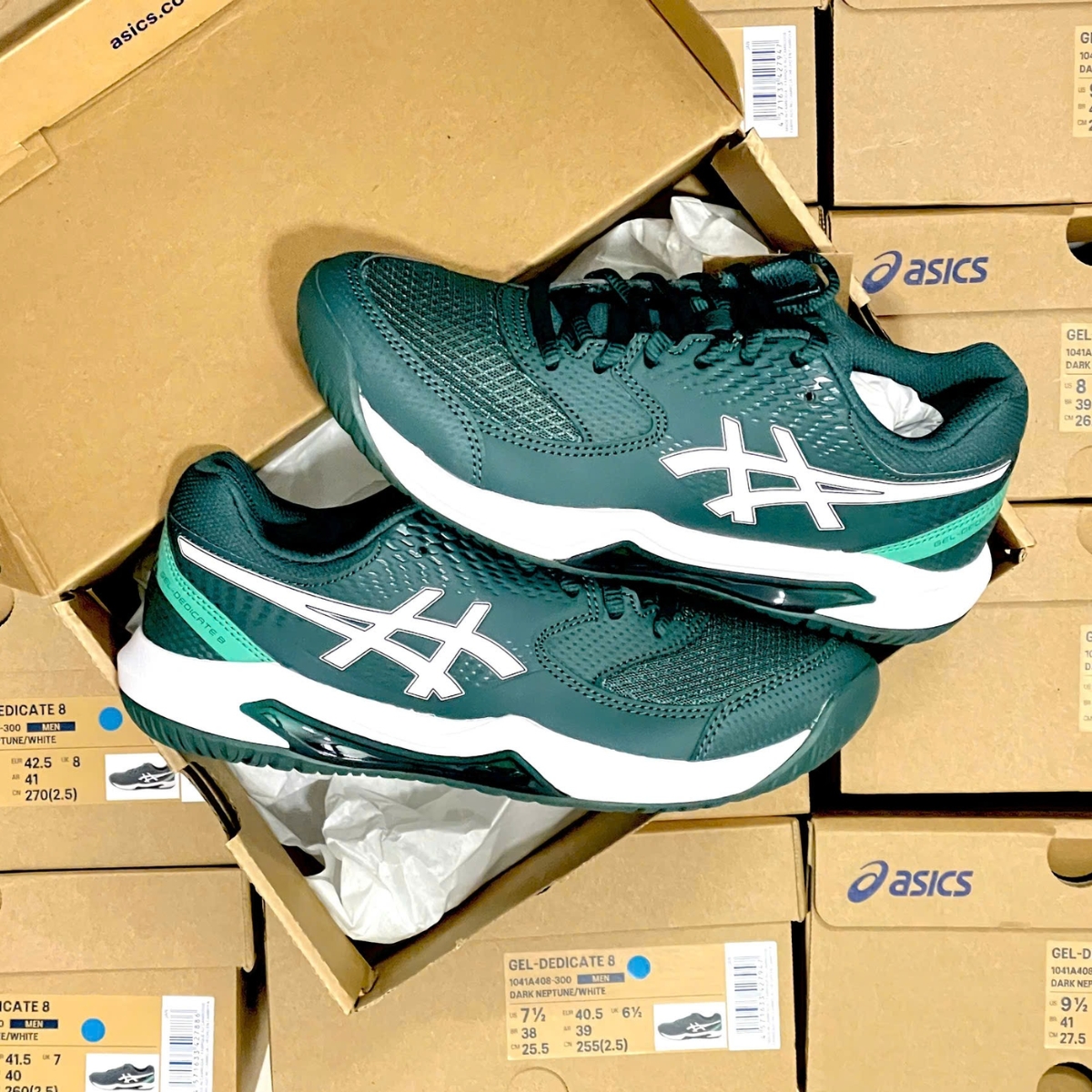 Giày ASICS Gel-Dedicate 8 phiên bản Dark Neptune/White (1041A408-300) là lựa chọn lý tưởng dành cho người chơi tennis và các môn thể thao trên sân cần sự ổn định, linh hoạt và thoải mái trong suốt quá trình vận động. Thiết kế mang tông xanh Dark Neptune kết hợp trắng tạo nên diện mạo thể thao, hiện đại và dễ phối cùng nhiều trang phục thi đấu.