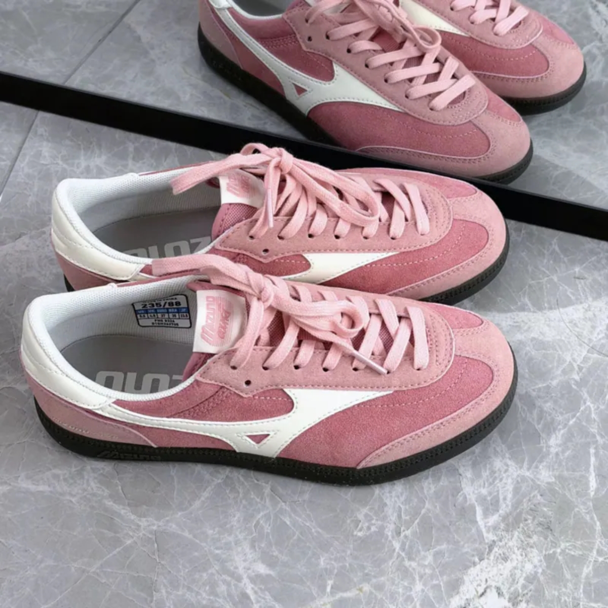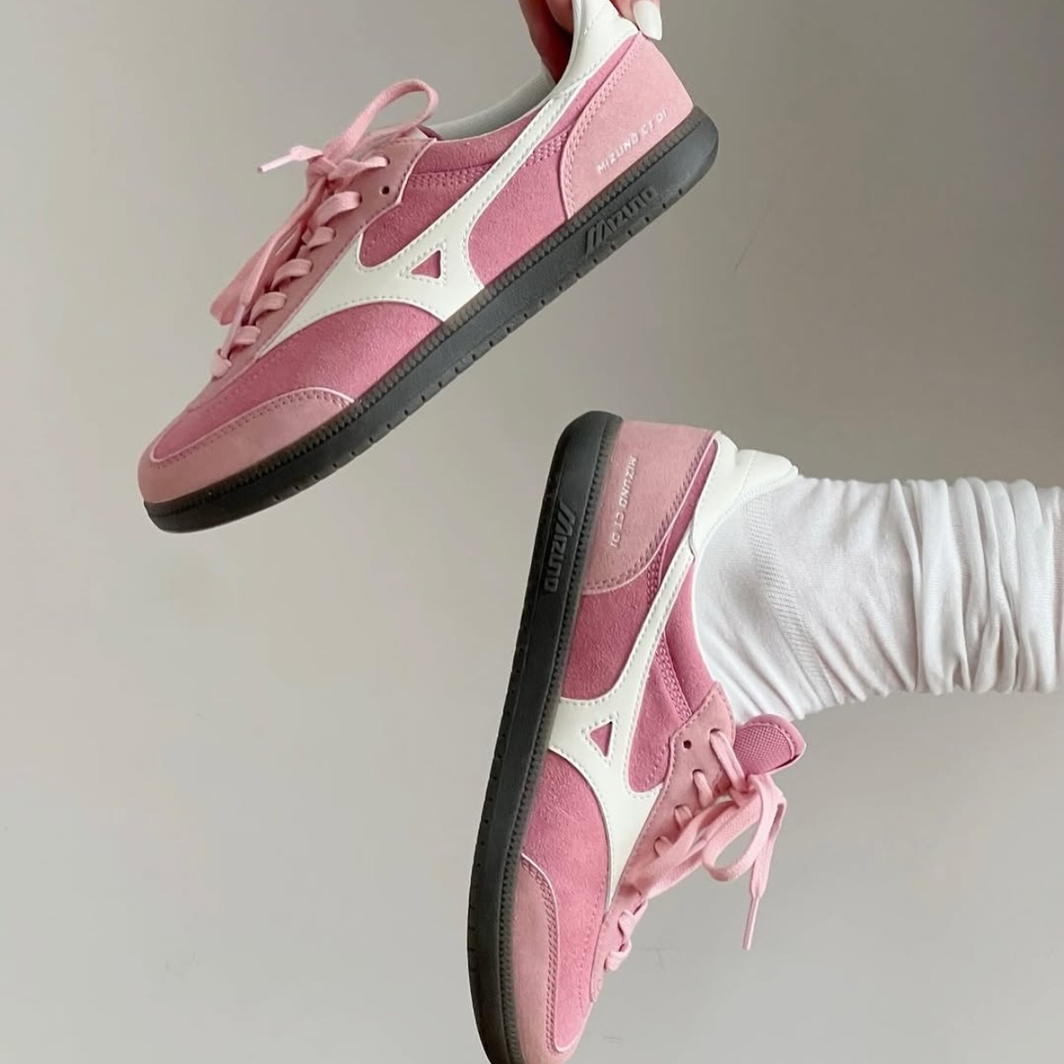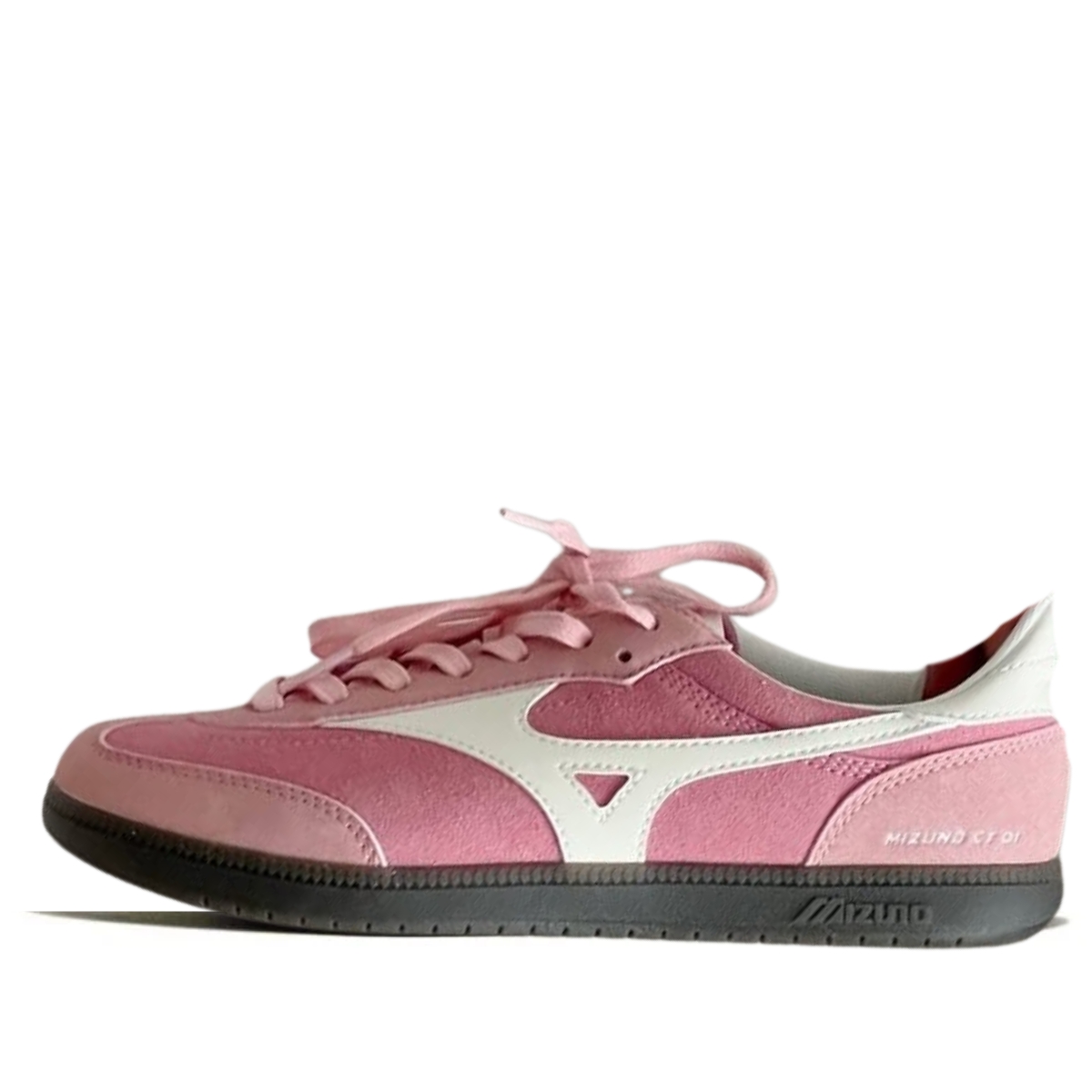 Phối màu hồng và trắng tạo nên vẻ ngoài trẻ trung, nổi bật nhưng vẫn dễ phối với nhiều trang phục khác nhau. Logo Mizuno đặc trưng được đặt ở hai bên thân giày, tăng thêm tính nhận diện và nét thể thao.