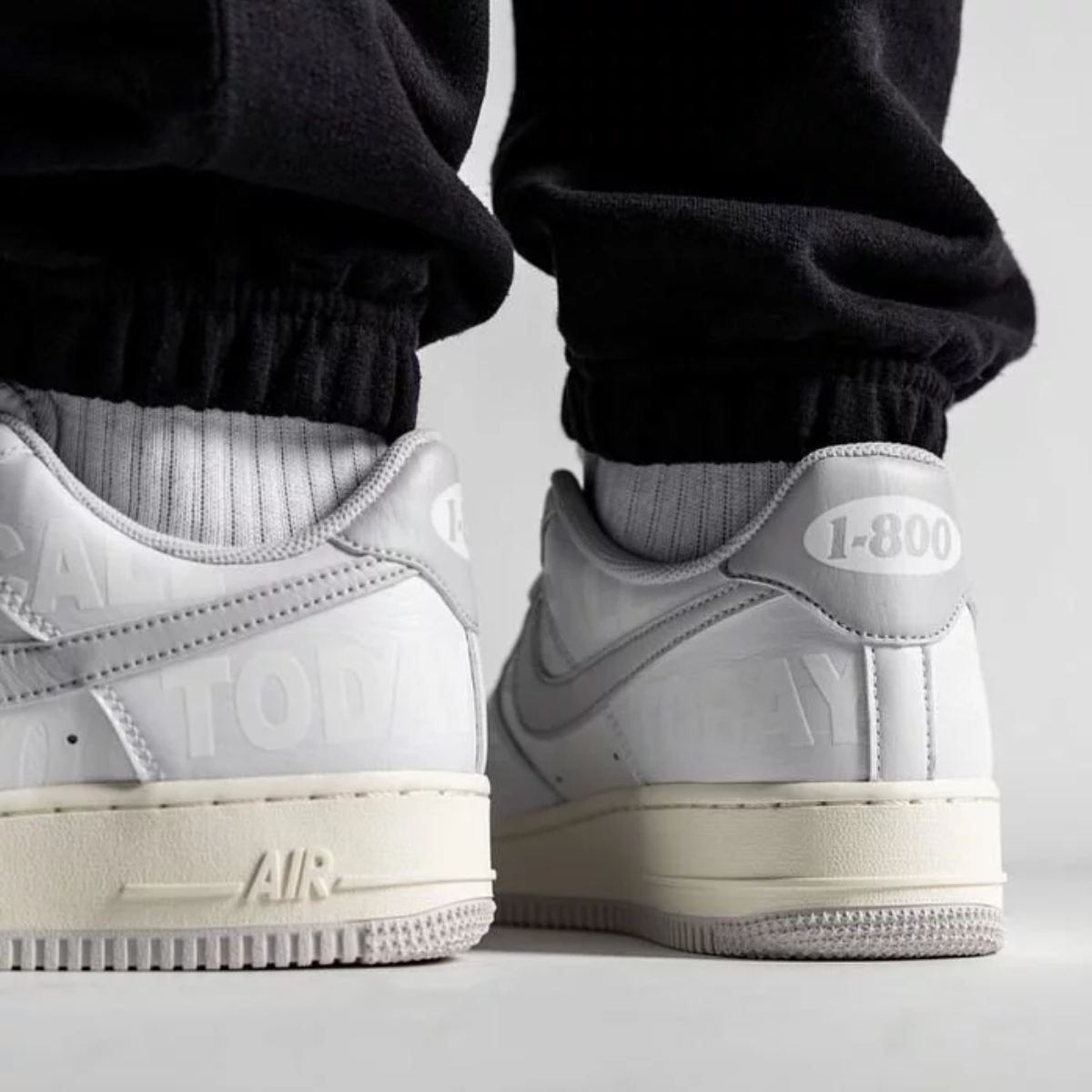 - Chi tiết thiết kế: Một điểm nhấn nổi bật là họa tiết chữ “1-800” in dọc theo thân giày, biểu thị chủ đề của mẫu này. Phần gót và lưỡi gà cũng có thêm các chi tiết chữ “Toll Free” và các hình ảnh biểu tượng điện thoại, tăng thêm sự độc đáo và cá tính.