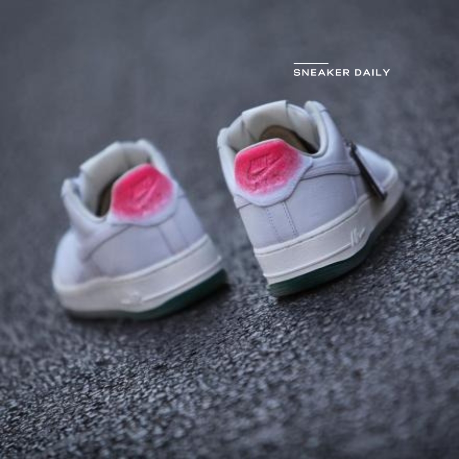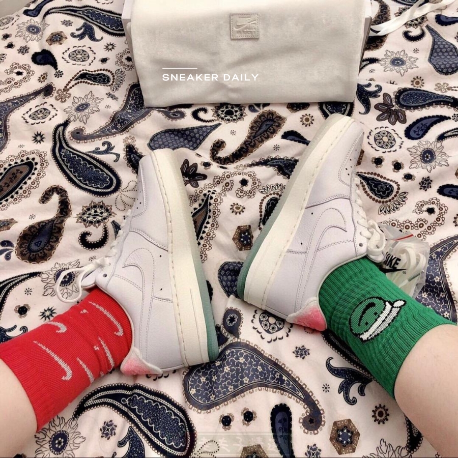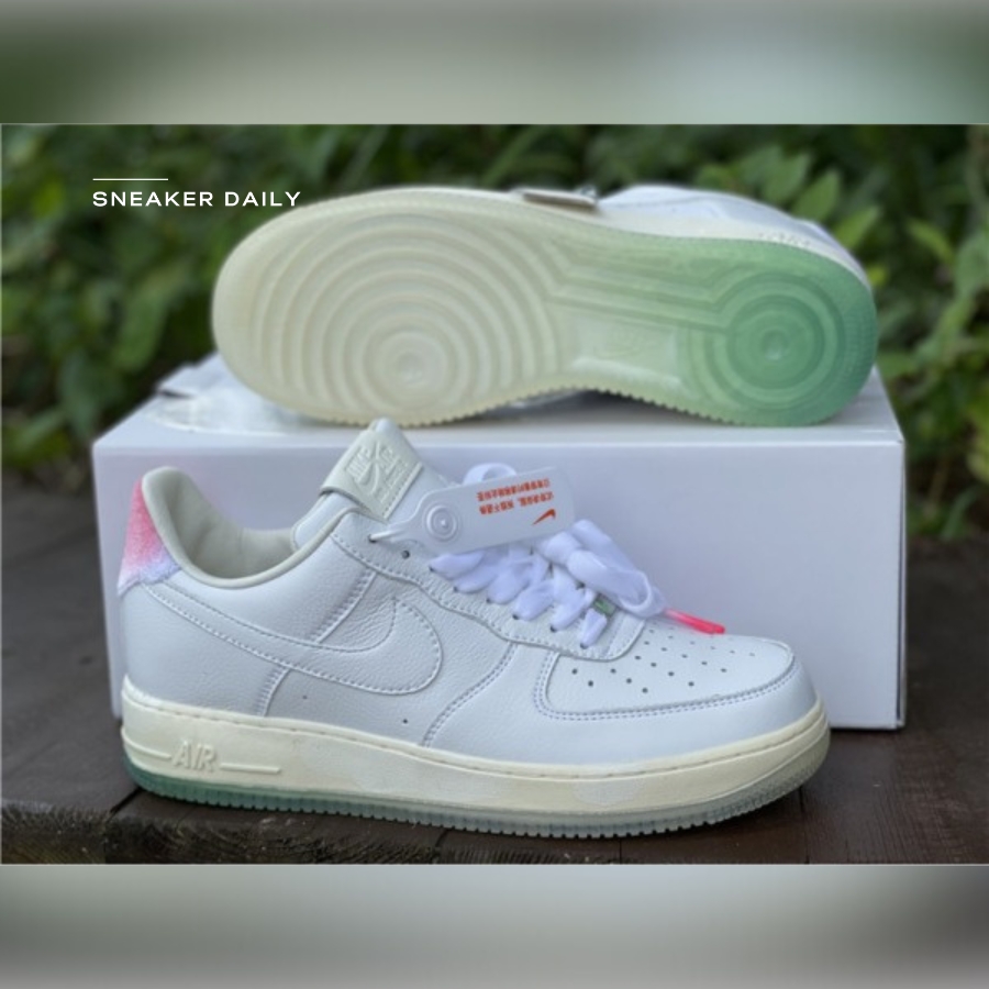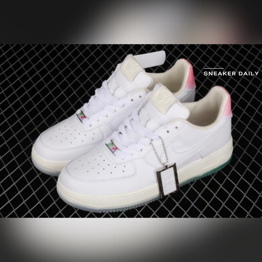 - Đế giữa Air màu trắng và đế ngoài màu xanh lá cây và hồng: Hoàn thiện vẻ ngoài vui tươi và may mắn.
