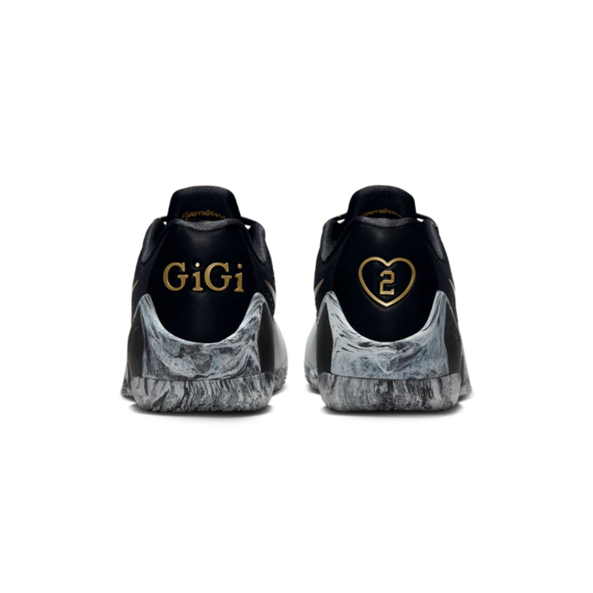Phần gót giày còn mang biểu tượng trái tim ôm lấy số áo “2” – số áo thi đấu của Gigi. Một chi tiết cảm động khác là chữ “Mambacita” xuất hiện trên lưỡi gà, như một lời nhắc nhở đầy tình cảm về biệt danh mà Gigi đã được biết đến, theo bước cha mình – “Black Mamba”. Mỗi chi tiết nhỏ đều được thiết kế để tôn vinh ký ức về một cô bé đầy tài năng và đam mê.