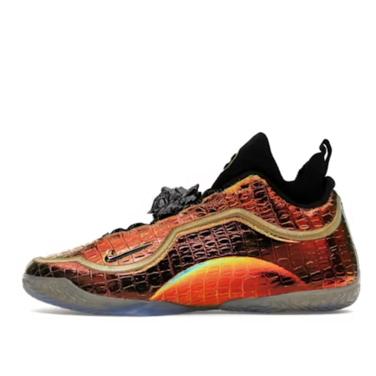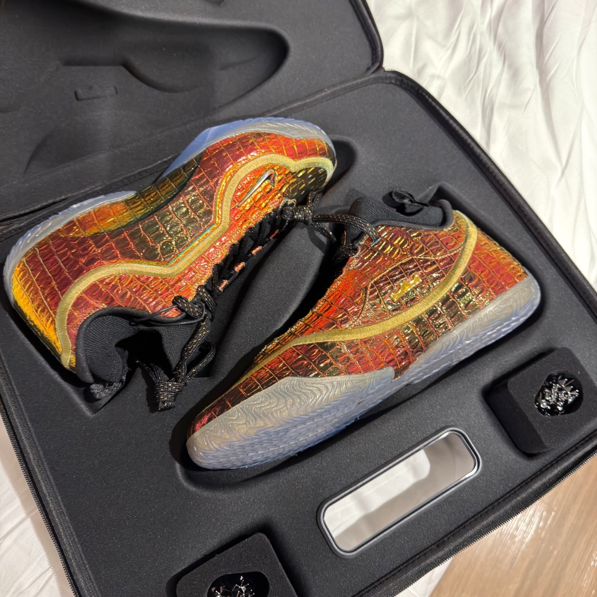 Phần upper sử dụng chất liệu tổng hợp cao cấp với hiệu ứng ánh kim và các chi tiết dập nổi, tạo nên vẻ ngoài nổi bật và cá tính. Các điểm nhấn mang dấu ấn của LeBron giúp tăng tính nhận diện và phong cách riêng.