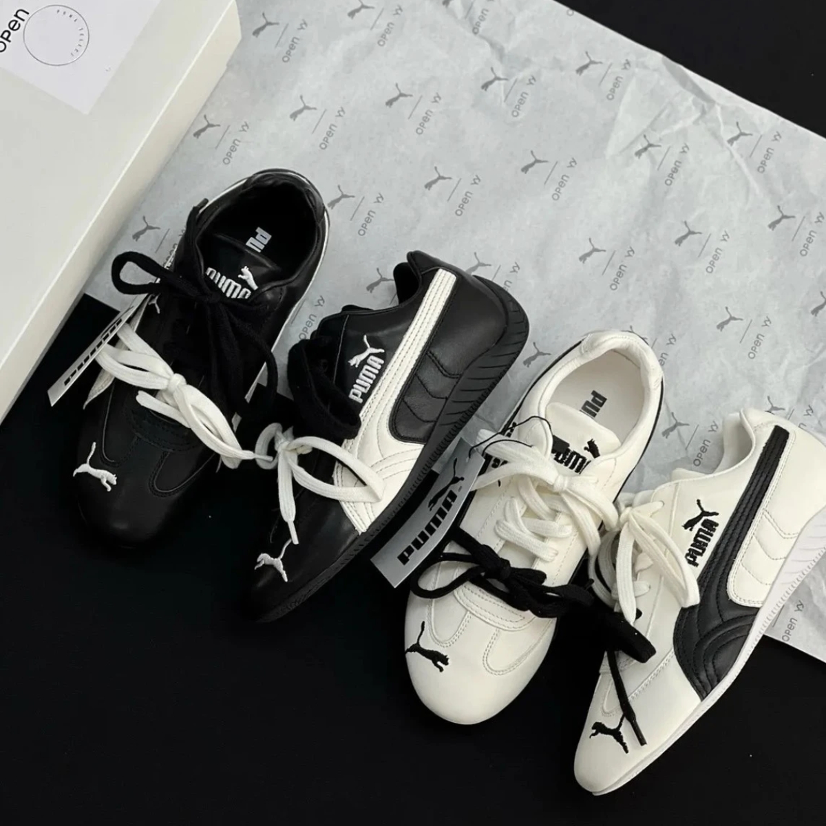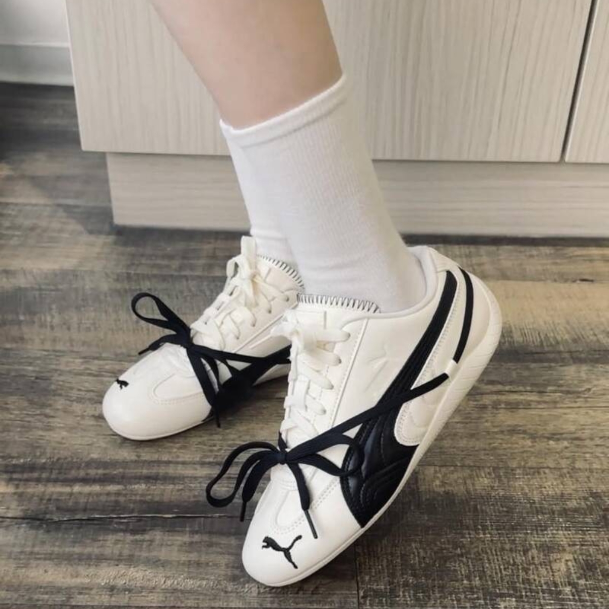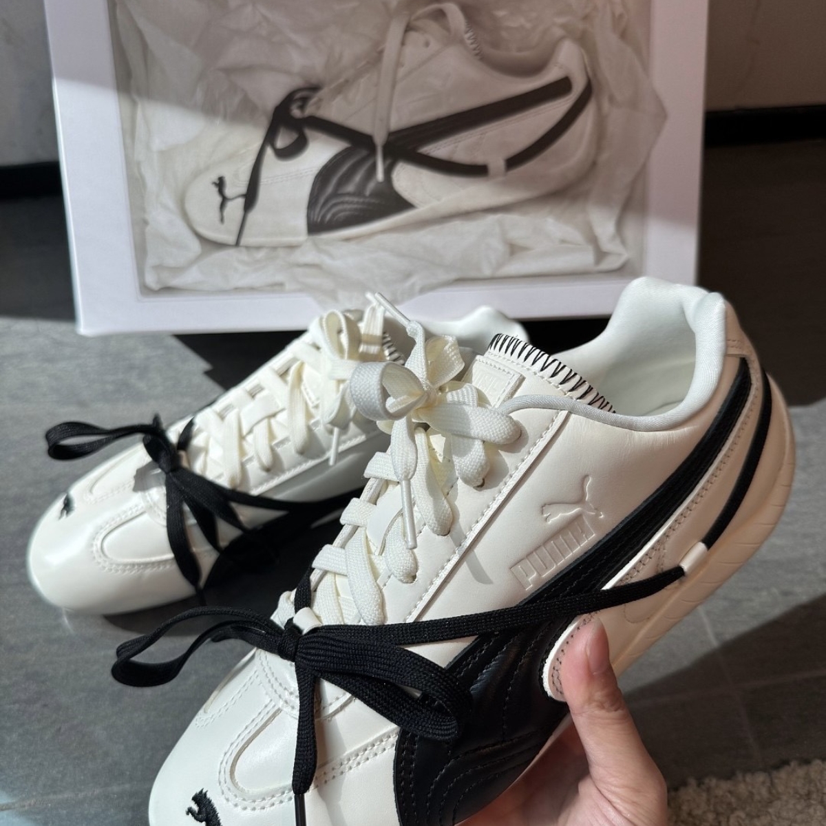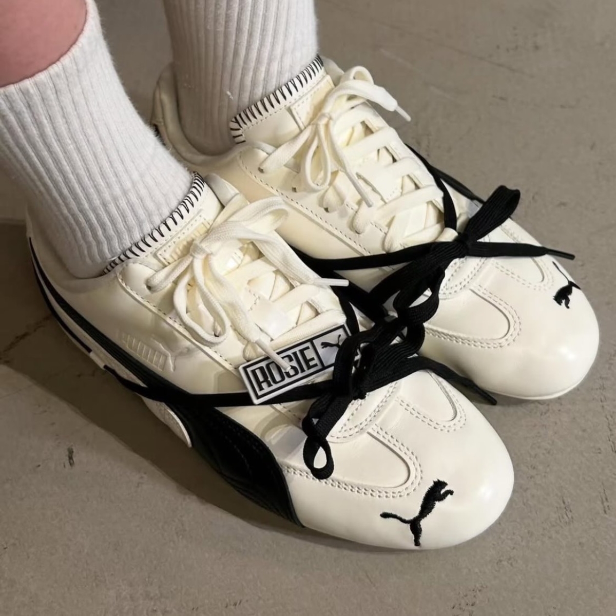 Giày Puma Speedcat Leather ‘Rosé White’ là phiên bản đặc biệt trong dòng Speedcat của Puma, được hợp tác cùng ca sĩ Rosé (thành viên nhóm BLACKPINK). Mẫu giày này giữ nguyên tinh thần cổ điển của Speedcat – thiết kế lấy cảm hứng từ giày đua xe, nhưng được làm mới với chất liệu cao cấp và tông màu tinh tế, sang trọng.