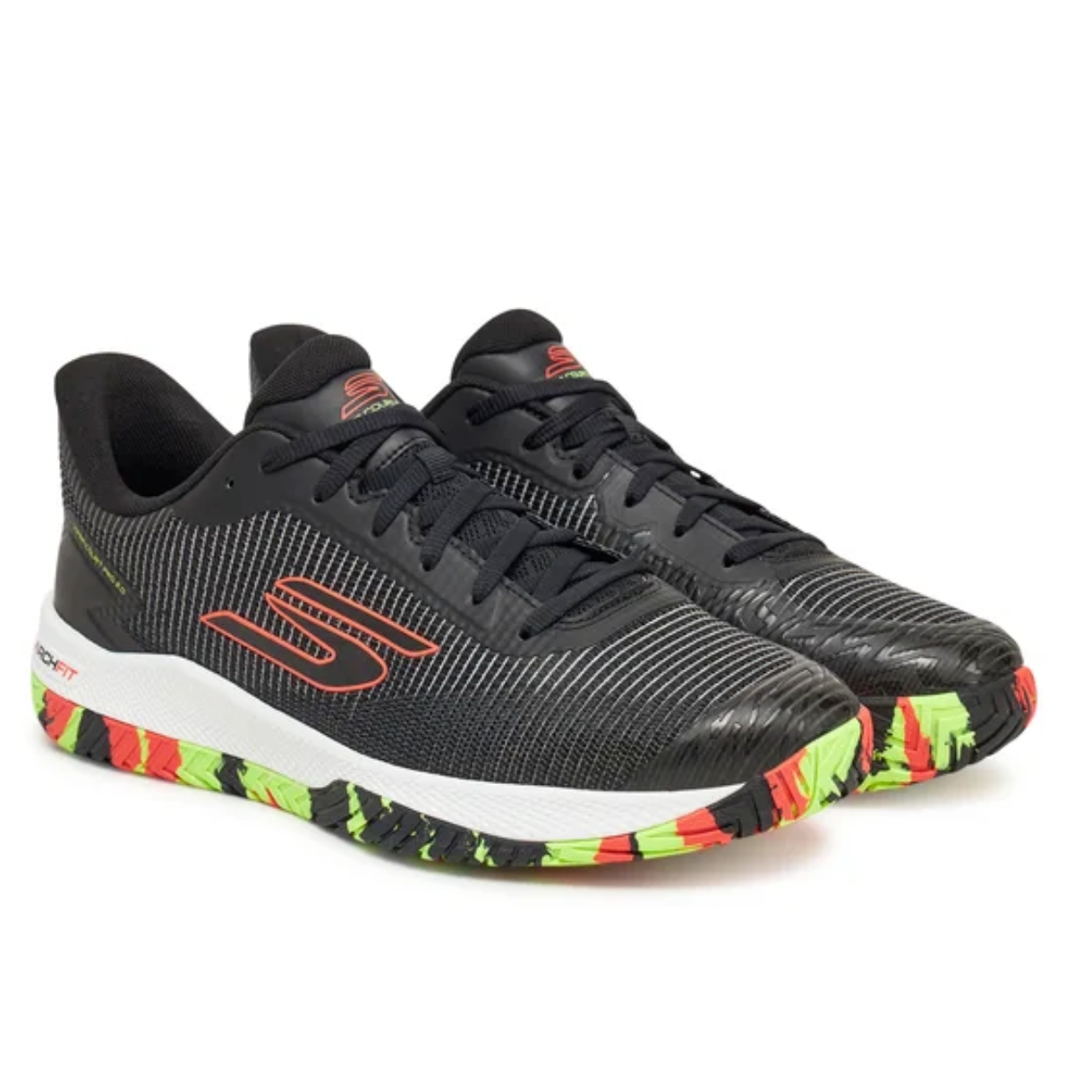 Giày Skechers Viper Court Pro 2.0 ‘Black’ là mẫu giày thể thao cao cấp được thiết kế dành riêng cho các môn vận động sân như pickleball, tennis và cầu lông. Phối màu đen kết hợp chi tiết đa sắc tạo nên vẻ ngoài năng động, phù hợp cả trong thi đấu lẫn luyện tập. Phần thân giày làm từ lưới thoáng khí cùng lớp phủ tổng hợp, giúp tăng độ bền mà vẫn đảm bảo sự nhẹ nhàng và thông thoáng.